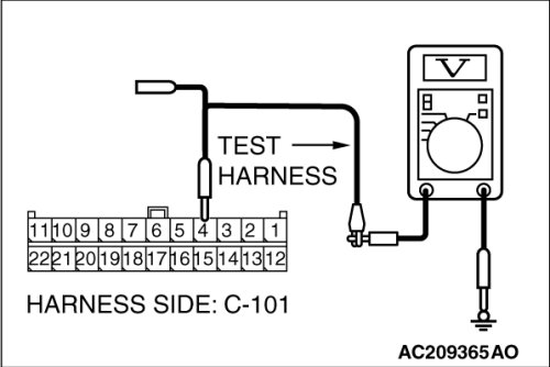 (1)Disconnect joint connector (4) C-101, and measure the voltage at the wiring harness side of joint connector (4) C-101.