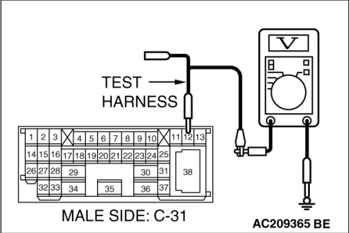(1)Disconnect intermediate connector C-31 and TCL/ASC-ECU connector A-32, and measure the voltage at the male side of intermediate connector C-31 (at front wiring harness side).