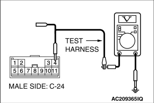 (1)Disconnect intermediate connector C-24 and joint connector (4) C-101, and measure the voltage at the wiring harness side of joint connector (4) C-101.