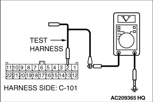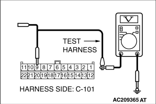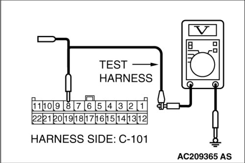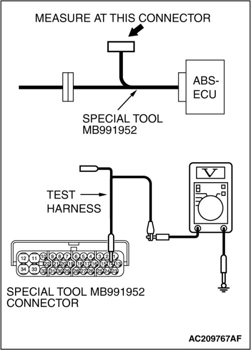 (2)Connect special tool MB991952 (ABS check harness) to the TCL/ASC-ECU and the wiring harness, and measure the voltage at special tool MB991952 (ABS check harness).