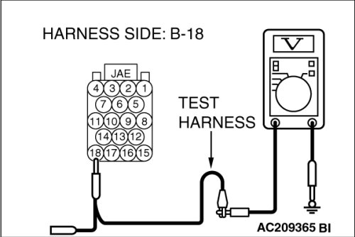 (1)Disconnect powertrain control module connector B-18 and TCL/ASC-ECU connector A-32, and measure the voltage at the harness side of powertrain control module connector B-18.