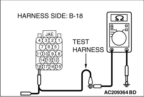 (1)Disconnect powertrain control module connector B-18 and TCL/ASC-ECU connector A-32, and measure the resistance at the harness side of powertrain control module connector B-18.