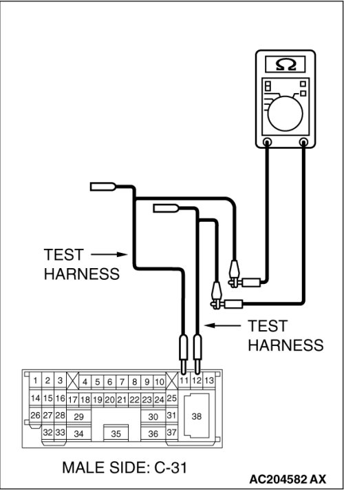 (4)Measure the resistance between intermediate connector C-31 terminals 11 and 12.