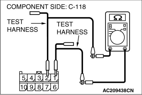 (1)Disconnect TPMS receiver connector C-118, and measure the resistance at the component side of TPMS receiver connector C-118.