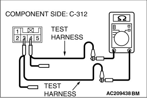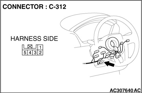 (1)Disconnect steering wheel sensor connector C-312, and measure the resistance at the equipment side of steering wheel sensor connector C-312.