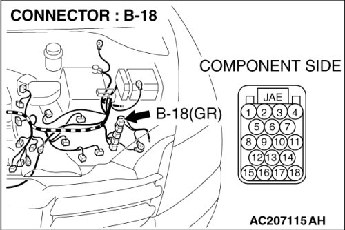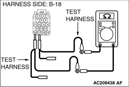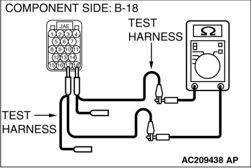 (1)Disconnect powertrain control module connector B-18, and measure the resistance at the equipment side of powertrain control module connector B-18.