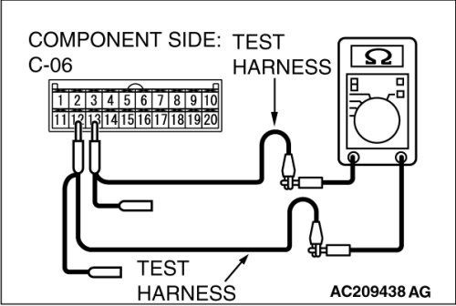 (2)Measure the resistance between the multi-center display unit (middle-grade type or Mitsubishi Multi Communication System) connector terminals 12 and 13 [multi-center display unit