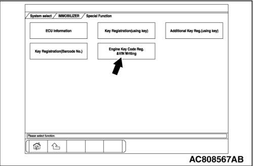 8. Select "Engine Key Code Reg.&VIN Writing."