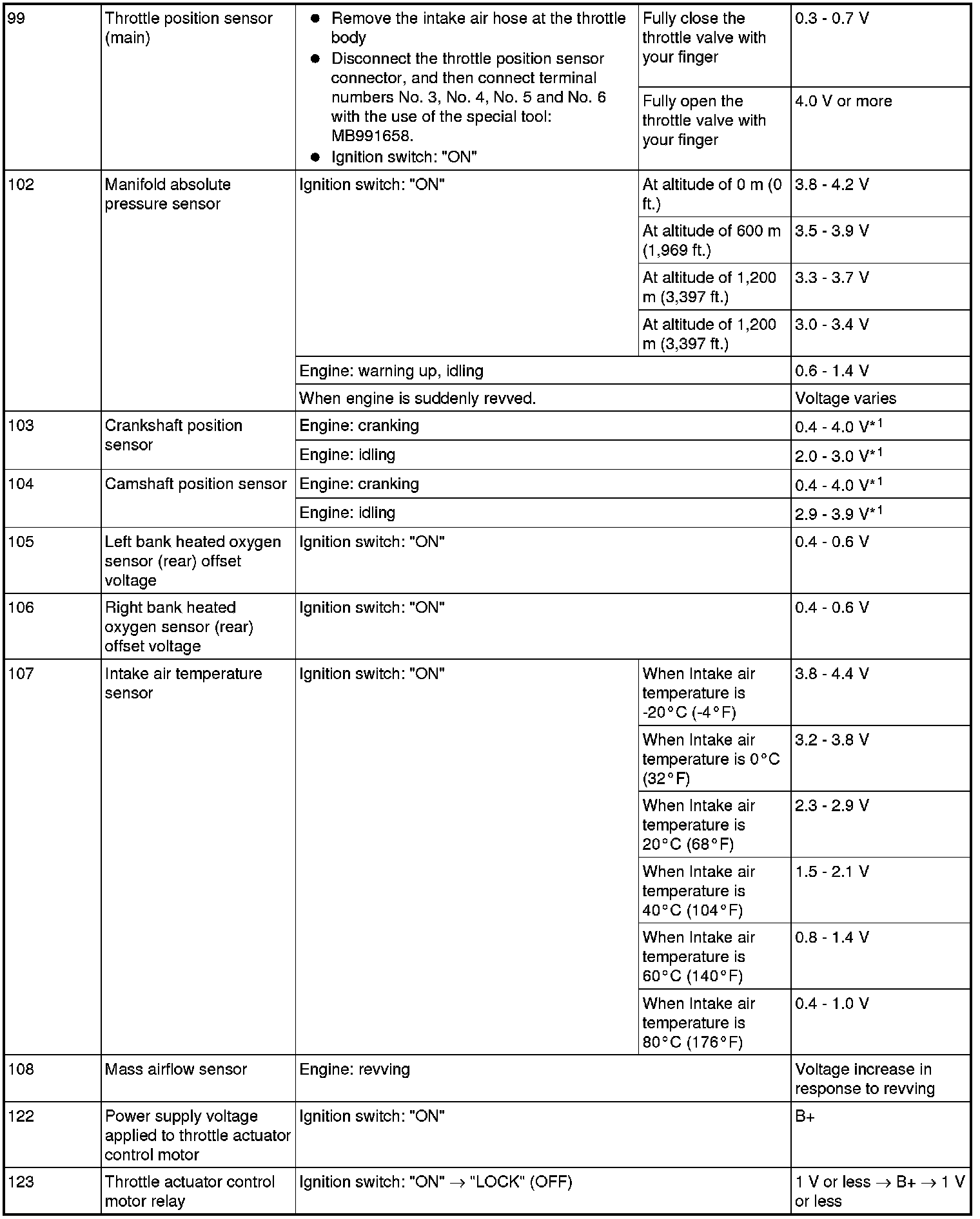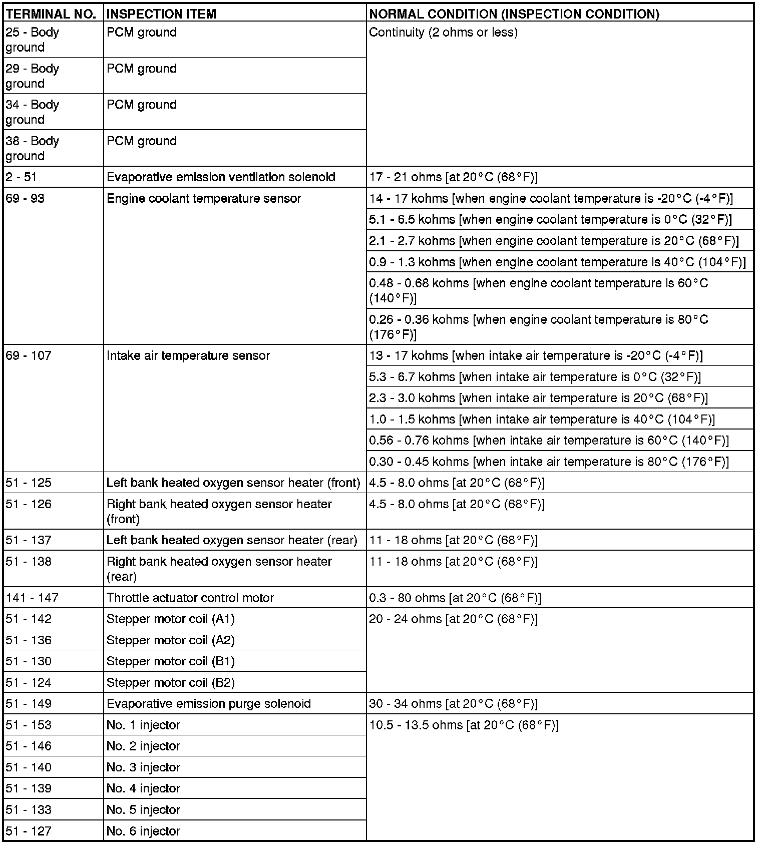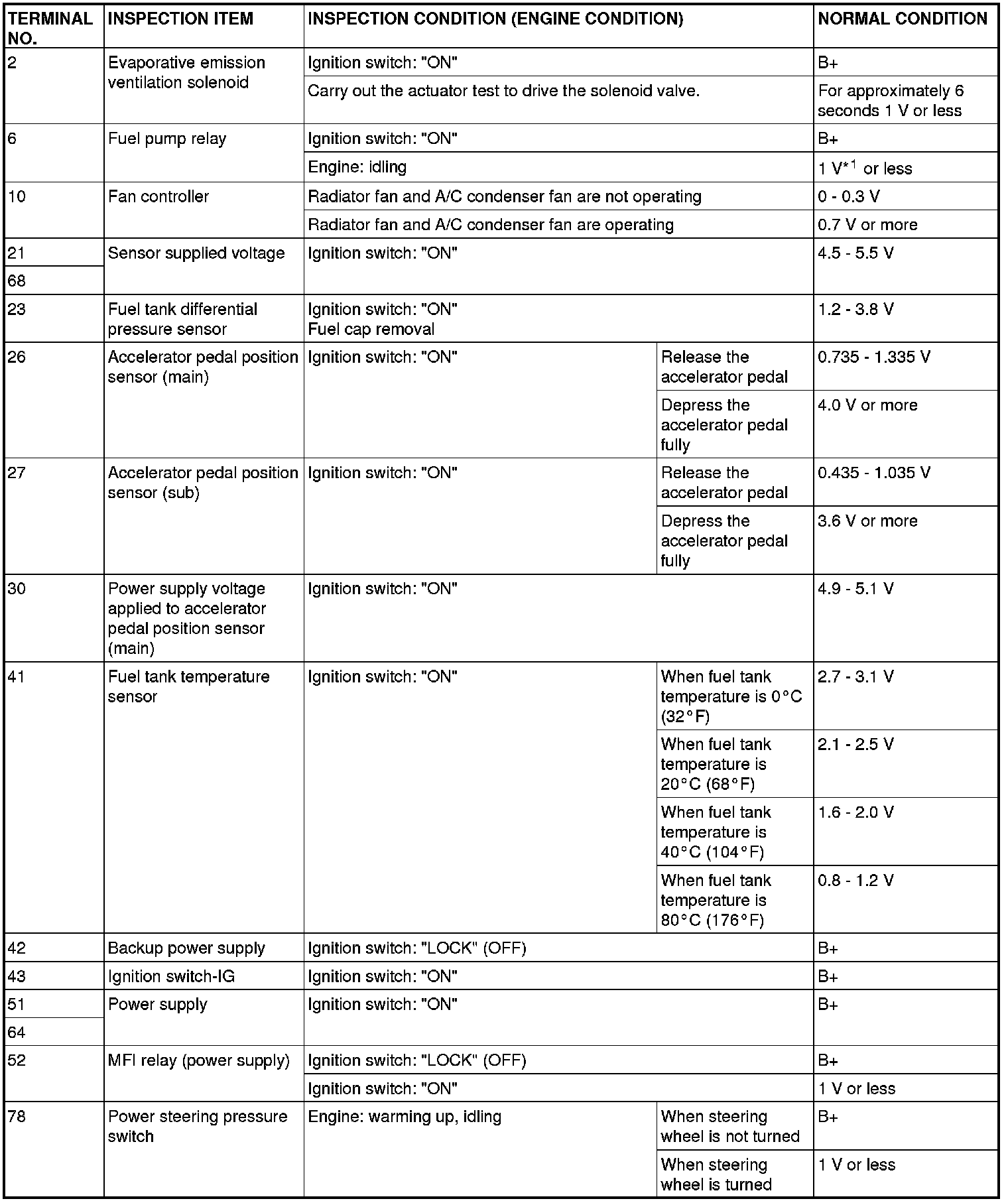 TERMINAL VOLTAGE CHECK CHART