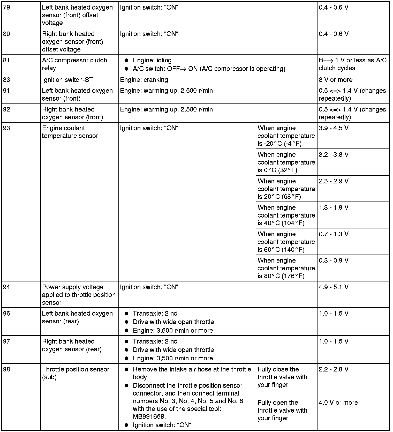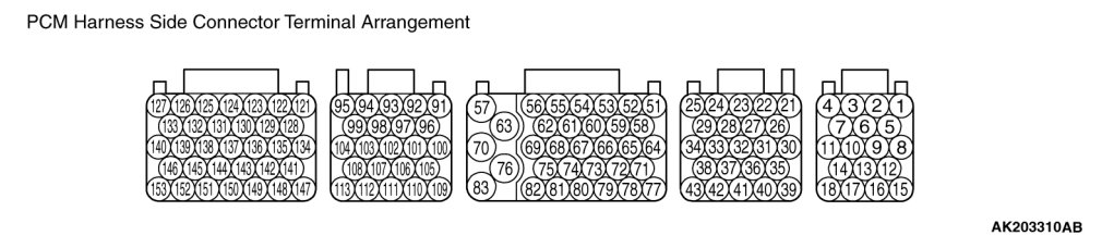 1. Disconnect the PCM connectors B-18, B-19, B-20, B-21 and B-22, and connect check harness special tool MB991923 between the PCM connectors.