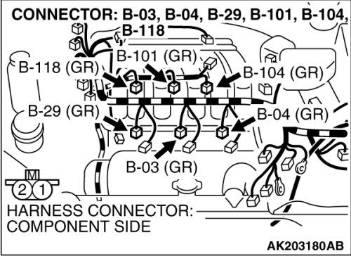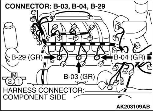 (1)Disconnect the left bank injector connector B-03, B-04, B-29.