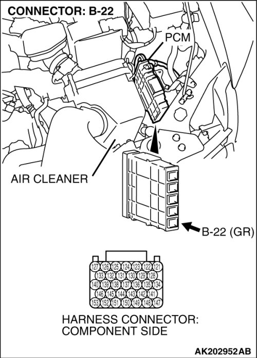 STEP 13. Check the harness connector B-22 at the PCM for damage.
