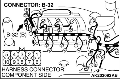 STEP 11. Check harness connector B-32 at the intermediate connector for damage.