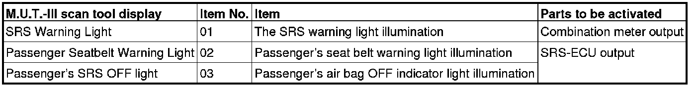 ACTUATOR TEST REFERENCE TABLEThe scan tool activates the following actuators for testing.