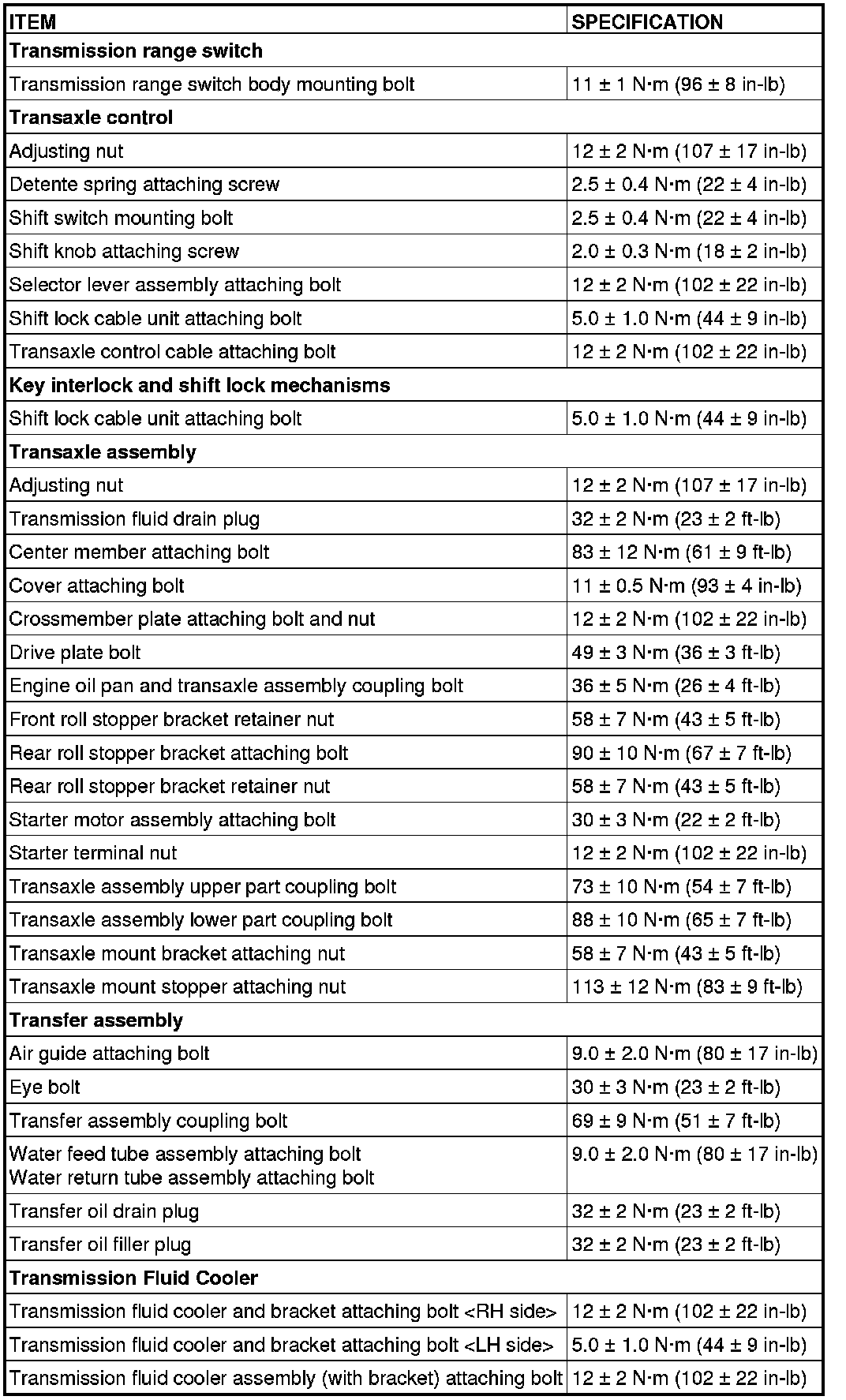 FASTENER TIGHTENING SPECIFICATIONS