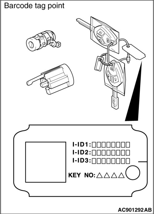 - After the ignition key registration is finished, discard the barcode plate correctly at Mitsubishi dealer. The barcode plate has important information of the immobilizer system. Therefore, improper disposal of the barcode plate may decrease the security level.
