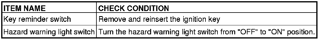 Q. When the key reminder switch and the hazard warning light switch are operated, does scan tool MB991958 sound in each case?