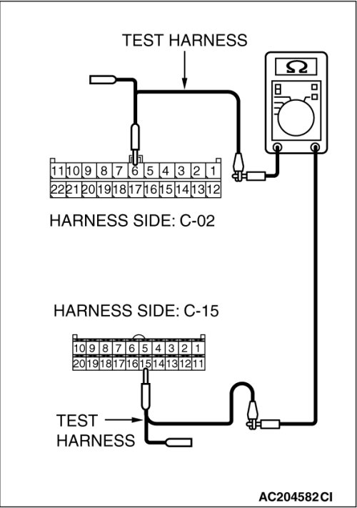 STEP 13. Check the CAN bus lines between joint connector (3) and the A/C-ECU. Measure the resistance between joint connector (3) C-02 and A/C-ECU connector C-15.