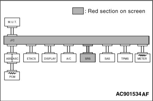 STEP 15. Using scan tool MB991958, diagnose the CAN bus line (Disconnect SRS-ECU connector C-121, and check the supplemental restraint system).