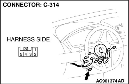 Q. Is steering wheel sensor connector C-314 in good condition?