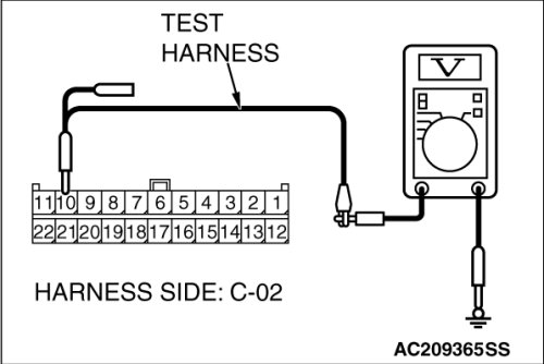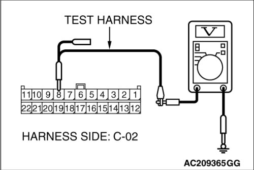NO If the voltage measures more than 1.0 V, repair the wiring harness between joint connector (3) and the multi-center display unit connector (Mitsubishi Multi Communication System).