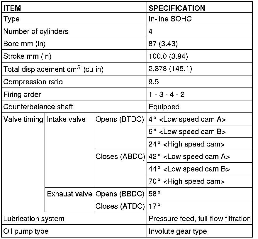 The 4G69 (2.4L) engine is an in-line four cylinder engine. The cylinder numbers are assigned as 1 - 2 - 3 - 4 from the front of the engine (timing belt side). This engine is fired in the order of the 1, 3, 4 and 2 cylinders.