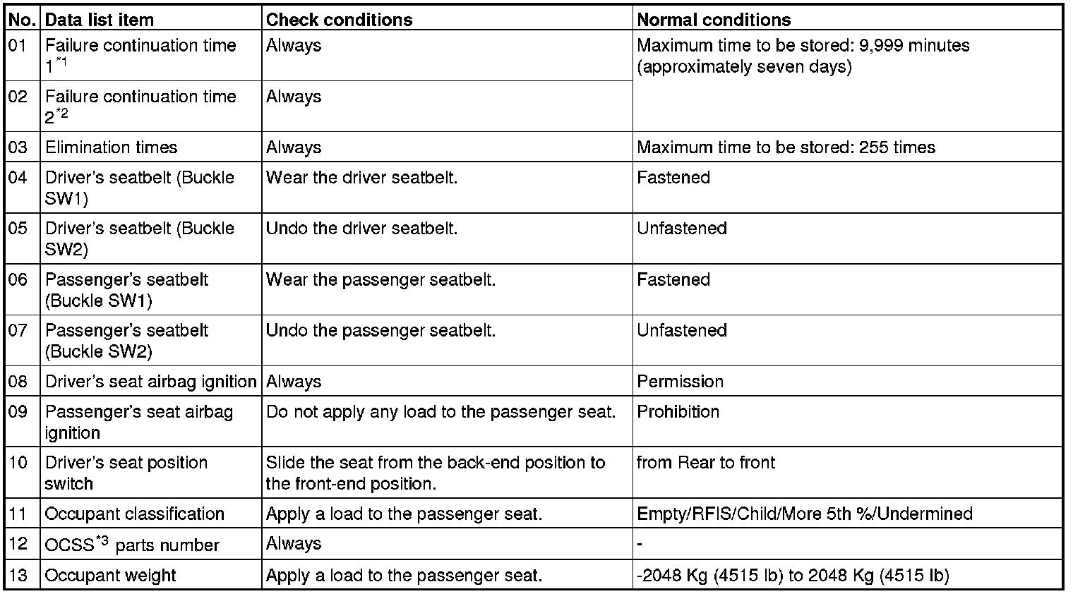 The following items can be read by the scan tool from the SRS-ECU input data.