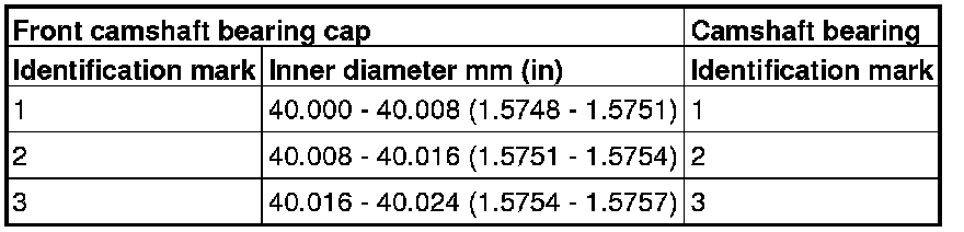 1. When replacing a camshaft bearing, select a bearing with the size corresponding to the identification mark in the table below.