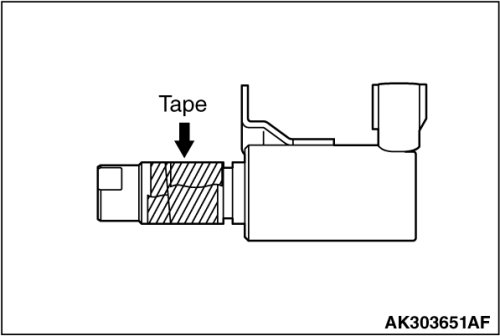 - Wind non-adhesive tape (seal tape, etc.) around the notch of the oil passage of the engine oil control valve before installing the O-ring to prevent damage. Damage to the O-ring causes oil leakage.