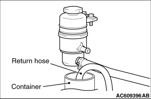 2. Disconnect the return hose connection, and then connect a vinyl hose to the return hose, and drain the fluid into a container.