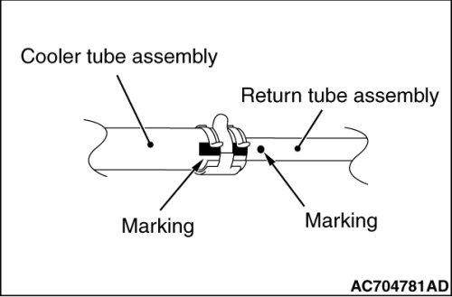 Install by aligning the mating marks of cooler tube assembly and return tube assembly.