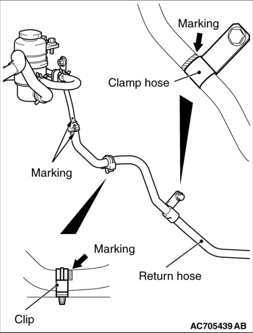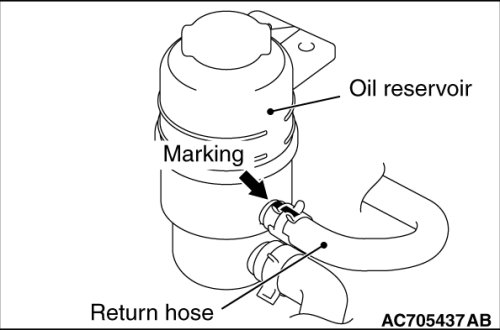 1. Install the return hose by aligning the mating marks.