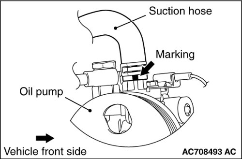 1. Install the suction hose with its marking located as shown in the figure.