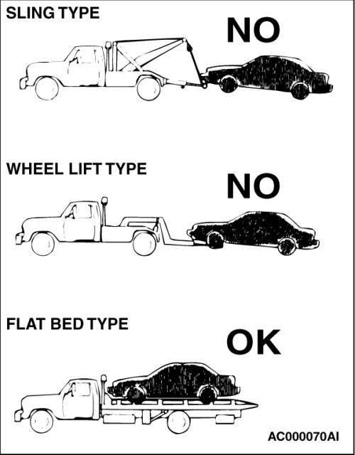 - If this vehicle is towed, use flat bed equipment