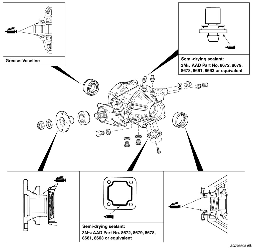 2. Apply multi-purpose grease to the oil seal lip and driveshaft oil seal seating area.