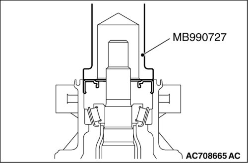 Use special tool MB990727 to press-fit the oil seal.
