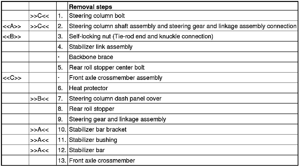 [[C]] FRONT AXLE CROSSMEMBER ASSEMBLY REMOVAL