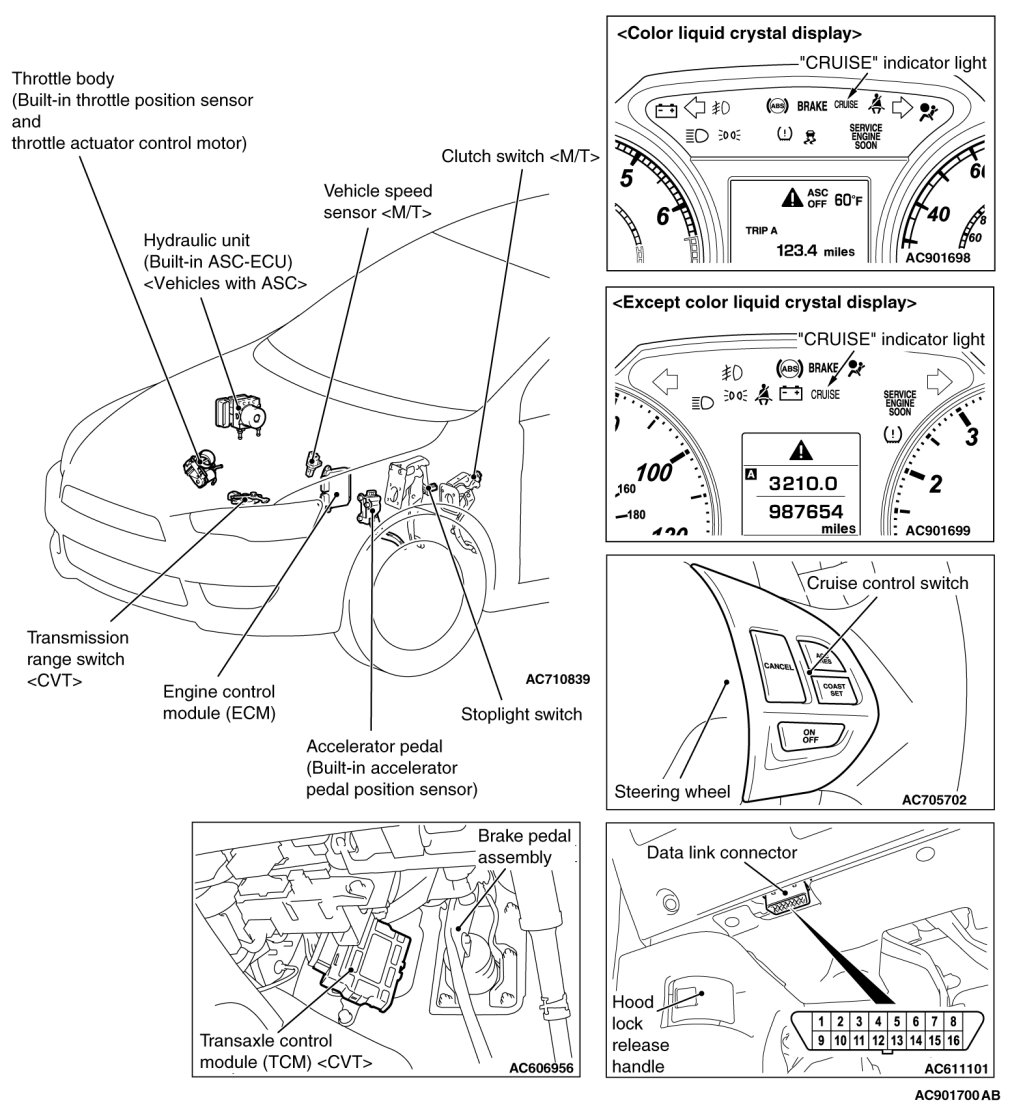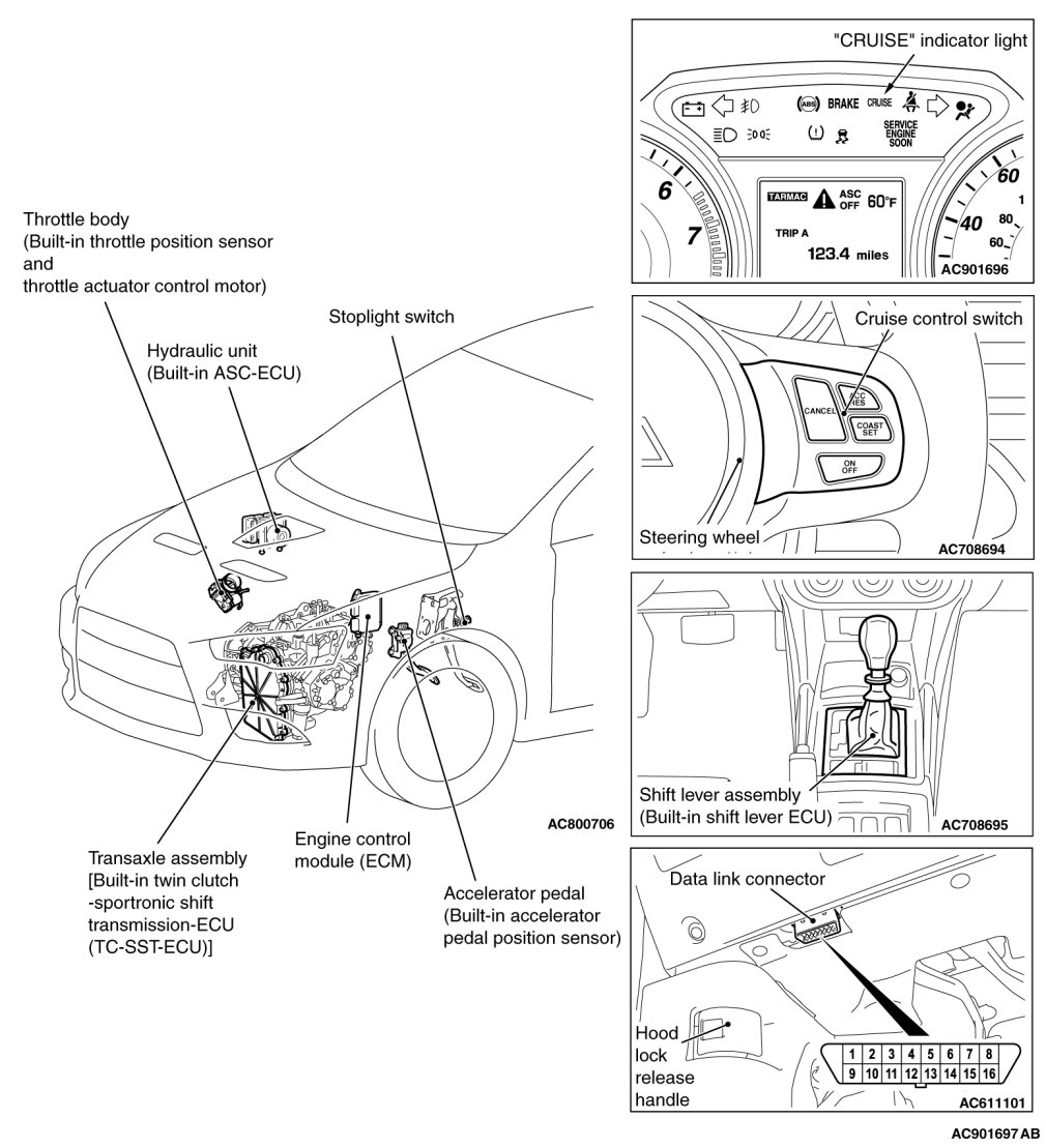 For this cruise control system, in conjunction with the electronic throttle valve control system, the engine control module (ECM) electronically controls the throttle valve.