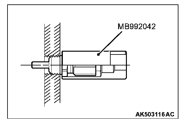 1. Drain engine coolant, then remove the engine coolant temperature sensor using the special tool MB992042 (engine coolant temperature sensor wrench).