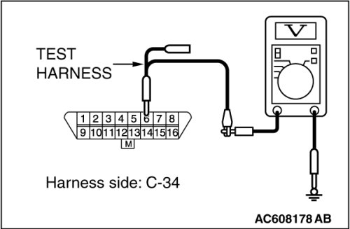 STEP 4. Check the wiring harness between data link connector C-34 and ETACS-ECU connector C-301 for a short to the power supply. Measure the voltage at data link connector C-34.