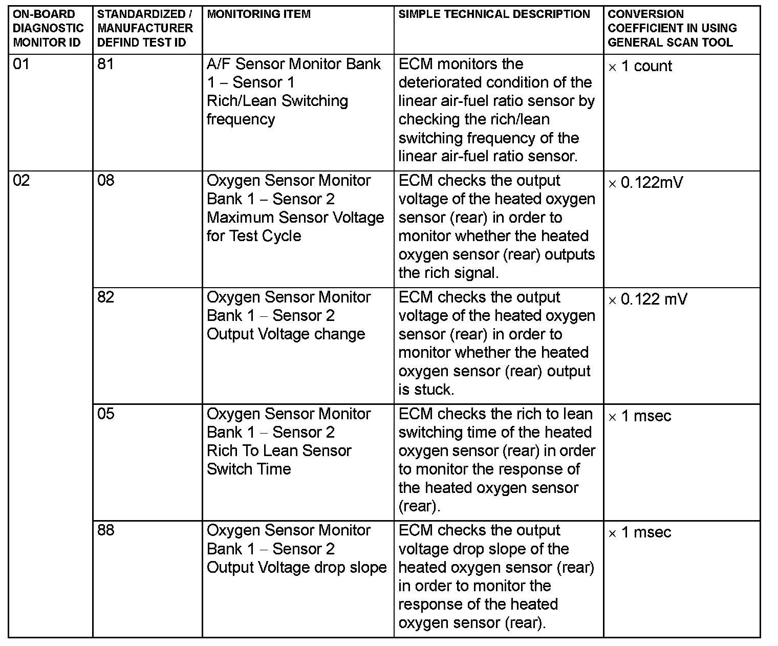 MODE 6 REFERENCE TABLEThe engine control module (ECM) monitors the condition of emission control system.