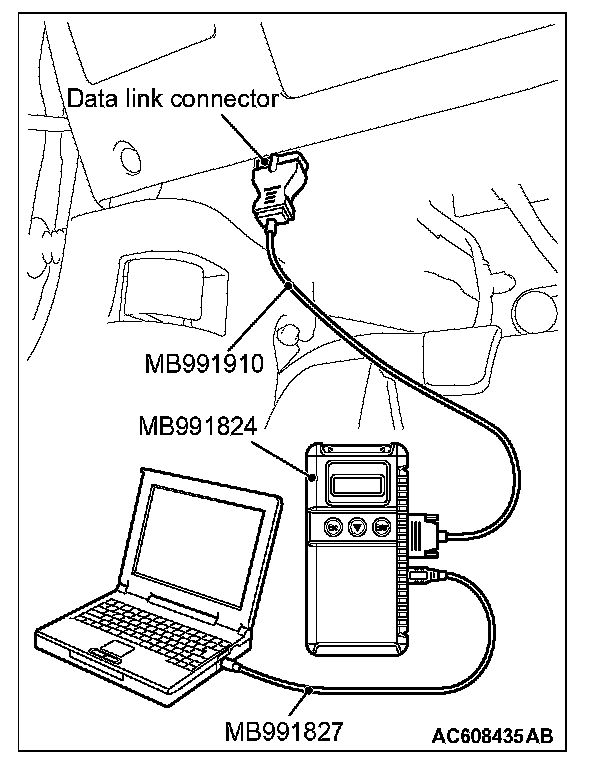 1. Connect scan tool MB991958 to the data link connector.
