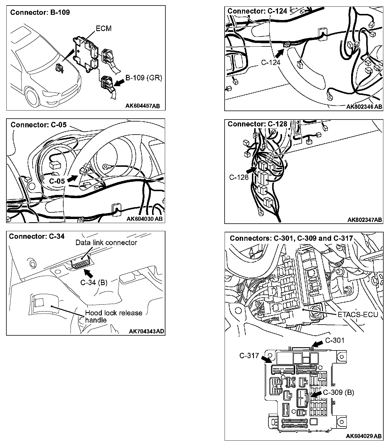 STEP 10. Check harness connector C-309 and C-317 at ETACS-ECU for damage.