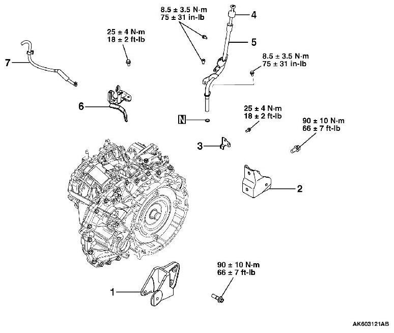 4. Remove the control cable bracket and breather hose from the transaxle.