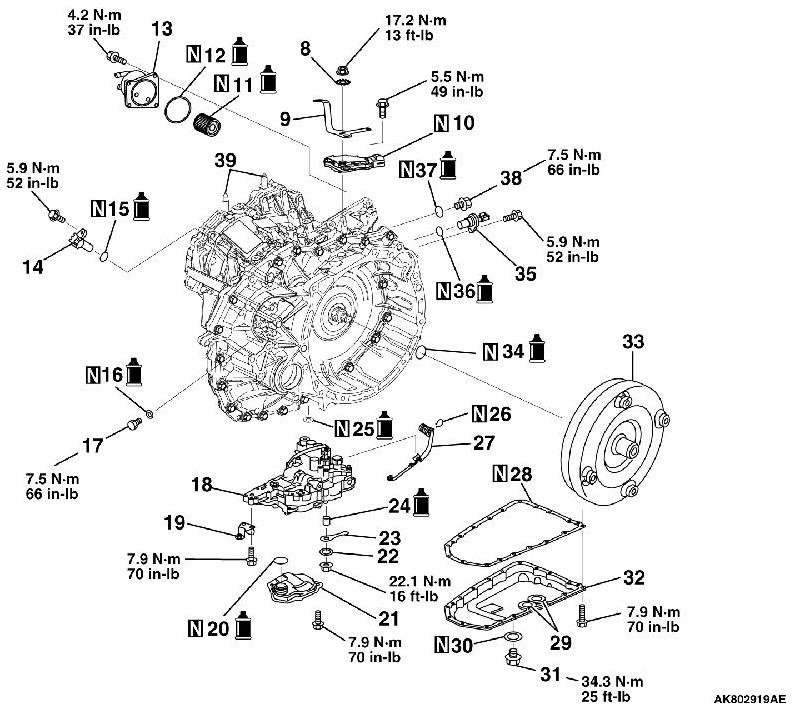 - After cleaning, remove the torque converter, and drain the transmission fluid.