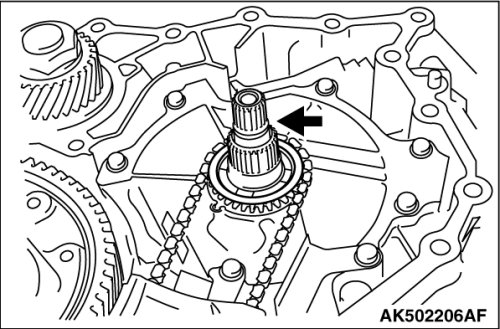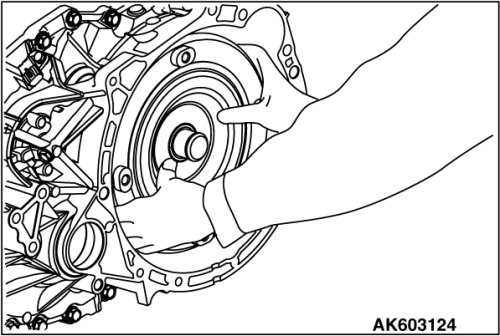 18. Using cylinder gage etc., measure the mounting bore diameter of reduction gear bearing outer race at the converter housing side; if the standard value is not satisfied, then replace the converter housing.