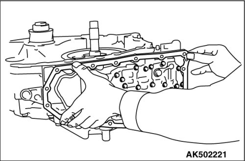 Tilt the control valve assembly, and after removing from the manual shaft side, remove the terminal body from the transaxle case.