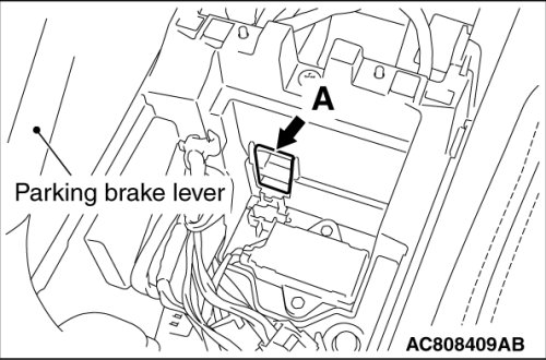 3. Insert a screwdriver or a similar tool from the section "A" shown in the figure. While pressing the shift lock forced release switch, move the shift lever.