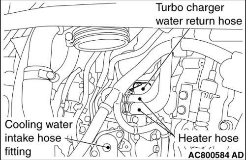 5. Disconnect the turbocharger water return hose and drain the engine coolant in the water jacket.