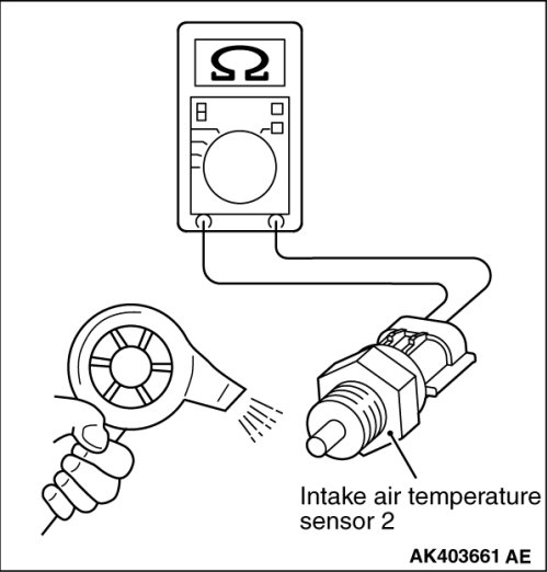 5. If the resistance does not decrease as heat increases, replace the intake air temperature sensor 2.